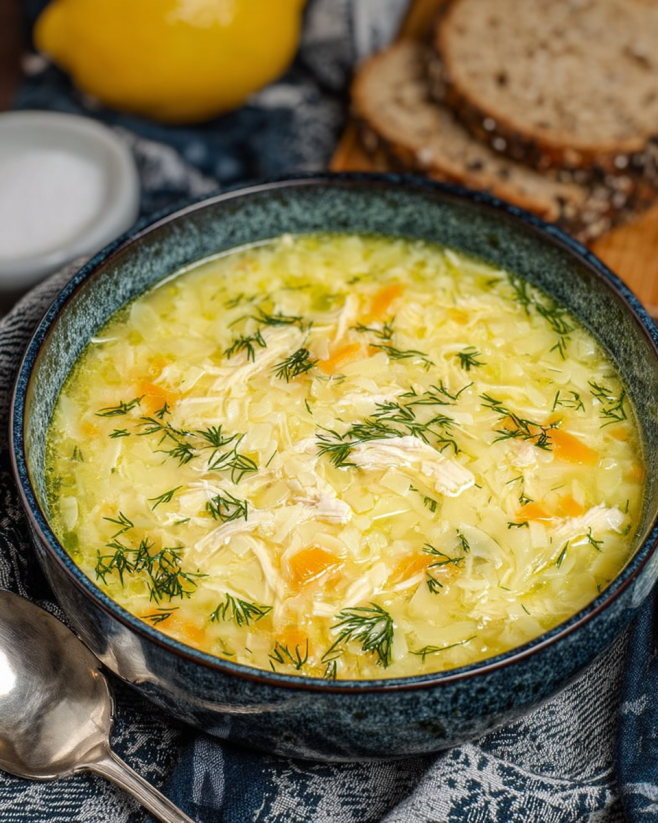 Avgolemono soup is a delightful Greek dish that combines chicken broth with lemon, tender chicken, and orzo pasta in a creamy sauce made from eggs and lemon juice.