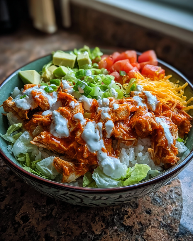 In conclusion, the Buffalo Chicken Bowl Recipe is a delightful and versatile dish that brings together bold flavors and wholesome ingredients. Whether you’re preparing it for a family dinner or a casual gathering with friends, this recipe is sure to impress. The combination of tender chicken, zesty buffalo sauce, and fresh toppings creates a satisfying meal that everyone will enjoy.