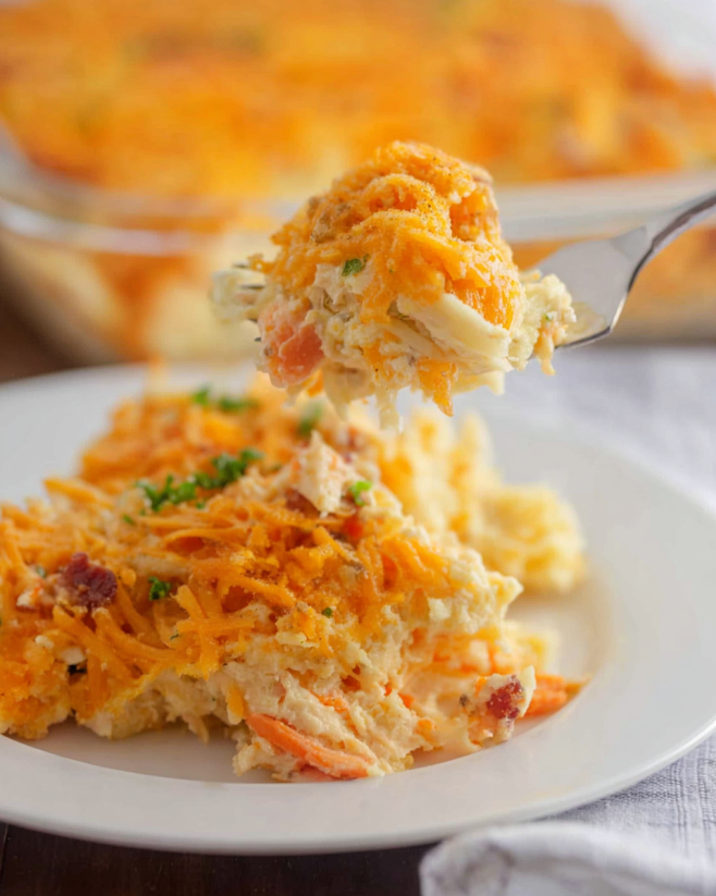 A delightful casserole that combines creamy ranch dressing, cream cheese, tender chicken, and crispy bacon, making it a comforting and flavorful dish.