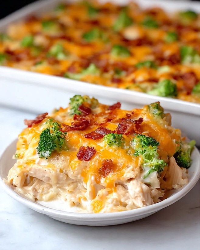 Cheesy Low-Carb Chicken Casserole Recipe a quick and satisfying option for busy weeknights or family gatherings. With minimal effort and time, you’ll have a hearty meal ready to serve!