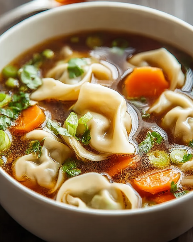 Comforting Potsticker Soup Recipe is a balanced meal that provides warmth, flavor, and essential nutrients. Enjoy it as part of a healthy diet, and feel free to customize the ingredients to suit your dietary needs!