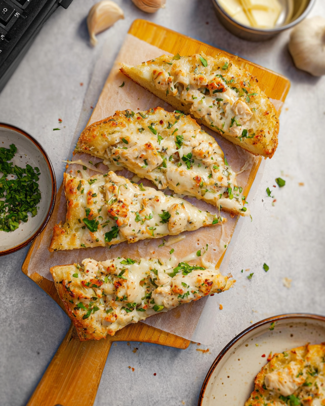 Creamy Chicken Alfredo. However, you can easily switch up the ingredients to suit your taste. For a healthier option, consider using whole grain or sourdough bread instead of traditional French bread. This adds a unique flavor and texture to your garlic bread.