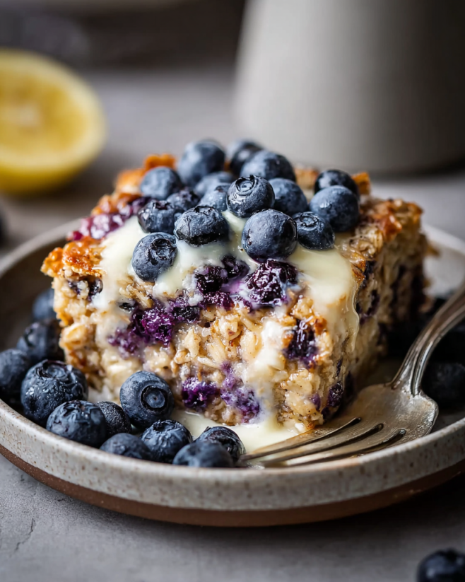 In conclusion, Lemon Blueberry Cream Cheese Oatmeal is a delightful and nutritious breakfast option that brings together the best of both worlds: flavor and health. This baked oatmeal dish is not only easy to prepare but also offers a wonderful way to start your day on a positive note. With its creamy texture, zesty lemon, and sweet blueberries, it’s sure to please everyone at the breakfast table.